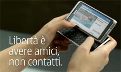 realizzato da Wieden & Kennedy e localizzato per l’Italia da JWT Italia e in onda da domenica 24 aprile su tutte le reti di Publitalia, su Sky e sul digitale terrestre. Lo spot in 30’’ dimostra in modo semplice come le caratteristiche di Nokia E7 siano in grado di semplificare la vita del suo possessore e di renderlo libero da qualunque luogo e in qualunque momento: 'Libertà è non avere bisogno di una scrivania' perché Nokia E7 offre accesso diretto, sicuro e in tempo reale alle caselle di posta aziendali e non, 'Libertà è avere amici e non contatti' per la grande integrazione con i più importanti social network, 'Libertà è viaggiare leggeri' grazie ai servizi di navigazione offerti da Nokia e dal mondo di Ovi Store.