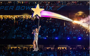 Kate Perry è stata la regina dello show supendo tutti con l’ingresso su un gigante leone metallico sulle note di “Roar” con un abito di fiamme, i fuochi d’artificio e l’uscita in volo su una cometa. Perry è stata accompagnata da Lenny Kravitz e Missy Elliott.