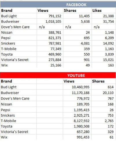 Ecco la classifica degli spot e dei teaser più diffusi sui social.
