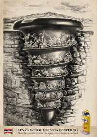 Non solo lubrificante, Svitol con questa campagna amplia il suo posizionamento e si rivolge sia agli amatori che ai professionisti del lavoro manuale, invitandoli a combattere ben più dei classici attriti o cigolii. I vari gironi infernali presentati nell'illustrazione in stile Doré eseguita da Manlio Truscia, comunicano l'ampliamento degli utilizzi di Svitol.Alla campagna hanno lavorato il copy Martino Lapini, l'art Domenico Montemurro sotto la direzione creativa di Sergio Spaccavento e Francesco Bozza.