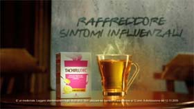 La creatività è volutamente semplice, tutta concentrata, senza dispersioni, sul prodotto e sulla sua efficacia. Un simbolismo ridotto all’essenziale che richiama, senza la presenza delle persone, i contenuti memorizzati attraverso la precedente campagna che ha contribuito per anni al successo di Tachifludec. Unici segni di presenza umana i rumori di fondo di un bar vivo e attivo, lo starnuto iniziale di una persona raffreddata e il suo respiro di sollievo dopo l’uso. Le diciture di legge accompagnano il magico effetto del calore-colore che scioglie il malessere. Il tutto garantito dall’autorevolezza del marchio Angelini.