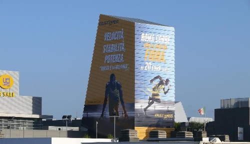 Il centro commerciale Porta di Roma è stato scelto perché offre una visibilità molto elevata: anche qui c’è un record. È il più grande d’Italia e registra 18,7 milioni di ingressi all’anno. In questo contesto, l’immagine di Bolt corre su mille metri quadri di maxi affissione, e saltando il concetto di velocità, stabilità epotenza da una parte e l’offerta commerciale dall’altra.