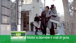 Il Gruppo Angelini rilancia la linea di pastiglie per il mal gola Tantum Verde P, arricchita di due nuovi gusti, con un nuovo spot tv dedicato che mette in primo piano l’effetto lievemente anestetico di Tantum Verde. Protagoniste del film, realizzato dall’agenzia Armando Testa, due amiche pronte ad 'affrontare' un freddo pomeriggio di shopping. Quando una delle due, scendendo dall’auto, si lamenta perché le si è addormentato il piede, l’altra si ritrova ad auspicare "mi si addormentasse la gola!" perché inizia a farle male.