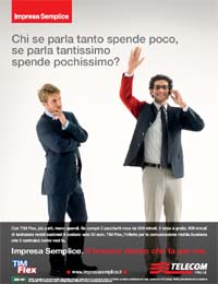 Torna la comunicazione di Impresa Semplice di Telecom Italia con Republic per la campagna Stampa TIM Flex che si sviluppa in vari annunci a partire dal 20 ottobre. Impresa Semplice è l’offerta su misura per il mondo business dei professionisti e delle PMI che prevede soluzioni di comunicazione mobile personalizzate. L’offerta Tim Flex di Impresa Semplice comprende pacchetti studiati per le esigenze delle imprese per parlare più a lungo e per avere a disposizione i servizi più avanzati ai costi più contenuti.