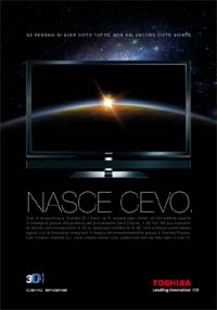 È on air da maggio la campagna stampa che annuncia il lancio del nuovo televisore top di gamma già presentato al Toshiba World 2011, l’evento che si è tenuto a Roma Cinecittà lo scorso aprile. L'agenzia curerà tutte le attività di comunicazione previste per questo lancio, coordinando l’immagine di prodotto dagli allestimenti e materiali punto vendita, al sito web, alle attività di follow up.