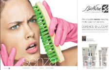 Con Ticia Arigo Advertising una nuova strategia creativa per esprimere la mission del marchio Bionike. Il visual dall’ironica intenzione, presenta una donna armata di guanti e spazzola che procede ad un energico trattamento del proprio viso. La nuova Linea Defence B-Lucent, efficace anti-macchia, rimuove delicatamente le discromie della pelle infatti la copy head recita: Per una pelle senza macchia, molte cose non servono.Sotto la direzione creativa di Ticia Arigo hanno lavorato Luca Del Bono copy e Rocco Fainardi art. Foto Juli Balla.
