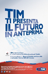 Dal 5 all'11 marzo presso il negozio Tim di via del Corso 353 il pubblico potrà sperimentare i nuovi servizi di ultrabroadband di Telecom Italia basati sulla rete mobile di nuova generazione che permette la trasmissione dati con una velocità fino a 100 Mbit/s in download e 50 Mbit/s in upload. A supporto campagna stampa quotidiana e web.