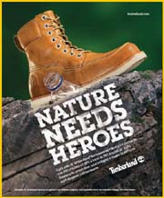 Timberland Italia lancia una campagna multimediale, on air su televisione, stampa, affissione e internet a sostegno del noto boot Earthkeepers Boot 2.0, prodotto di punta della stagione FW10 che, grazie alla sua natura eco- compatibile, incarna appieno la filosofia 'green' del marchio Americano. Protagonista della campagna il prodotto, sostenuto dalla headline di forte impatto 'Nature Needs Heroes' che richiama la necessità di sensibilizzare il pubblico verso il rispetto per la natura e un comportamento eco-friendly.