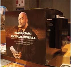 L’operazione di lancio prevede non solo una declinazione della creatività su stampa e affissione, ma anche un’iniziativa di btl che punta al dialogo col lettore nel corso del tour di presentazione del libro. La head viene variata e Saviano a chiedere al lettore: 'Raccontami un’Italia diversa'.