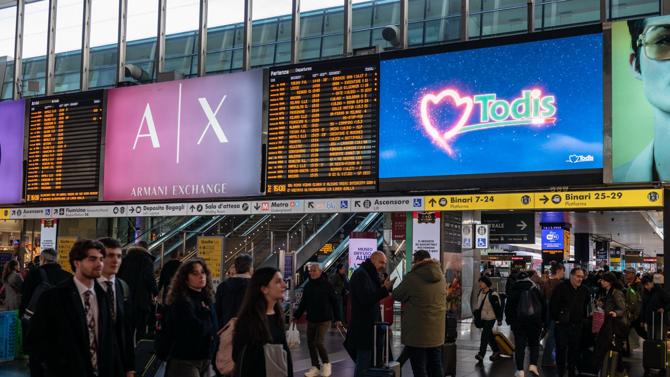 Il nuovo piano media valorizza i principali snodi ferroviari italiani, attraverso una combinazione di formati digital out of home ad alta visibilità. Il cuore della strategia è la copertura nelle stazioni di Roma Termini, Roma Tiburtina, Napoli Centrale e Palermo, dove DAs Media ha attivato maxi led digitali e un network di digitotem interni, per accompagnare il pubblico lungo tutto il percorso in stazione e massimizzare la frequenza espositiva.
