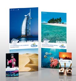 L'agenzia ha realizzato il nuovo materiale inverno 2009/2010. Cartelli vetrina e da banco, totem innovativi bifacciali e 'festoni', tutto il materiale è stato ideato a seguito di una ricerca condotta nelle Agenzie di Viaggio per soddisfare le esigenze espositive degli Agenti di Costa Crociere.
