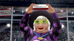 Nello spot infatti ritroviamo la strega che sorvolando uno stadio, attirata dagli applausi del pubblico, decide di cimentarsi con la propria scopa in una sorta di gara con gli atleti impegnati nelle diverse discipline, ma incorre in un vero e proprio trauma sportivo. Viene colpita dal martello lanciato da un atleta e scaraventata lontano realizzando un ottimo punteggio: nella reprise la ritroviamo sul podio al primo posto che esulta per la vittoria levando al cielo il prodotto fra le ovazioni del pubblico.