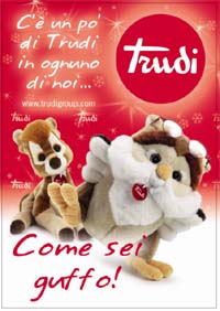 Trudi, brand italiano attivo nella creazione di peluche, rafforza la propria visibilità con una campagna integrata, ideata per il Natale 2010. Simpatia e ironia sono i leitmotiv del nuovo progetto di comunicazione che coinvolge la tv, con spot e presenze publiredazionali, e l’outdoor con decordinamica e arredo urbano. Immagini e testi giocano insieme per comunicare l’importanza del gioco nella vita dei grandi e dei più piccoli e i valori di sempre del marchio: affetto, poesia, sogno.Dal 5 al 18 dicembre, Trudi sarà protagonista su La7: una pianificazione pubblicitaria di due settimane, durante la quale i programmi di punta dell’emittente, quali le Invasioni Barbariche di Daria Bignardi e Niente di Personale di Antonello Piroso saranno invasi dai simpatici peluche. I morbidi animaletti, saranno anche presenti nel salotto di Exit con Ilaria D’Amico e Victor Victoria condotto da Vittoria Cabello. Non mancheranno, inoltre, spot durante il day time come Omnibus, Mattino week-end e Atlantide. Infine, Trudi raggiungerà anche il pubblico del Tg di Mentana grazie ad una formula che prevede la messa in onda di spot suddivisi nei Tg della giornata.