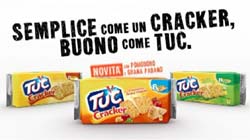 On air i due nuovi soggetti 'Statua' e 'Scooter' in cui viene evidenziata una grande novità all’interno della gamma: Tuc Cracker con Pomodoro e Grana Padano. Sono previsti, oltre ad azioni sul punto vendita, un grande piano di outdoor e station-domination a livello nazionale, un’azione di guerrilla a Milano e Roma, una campagna digital. Direzione creativa di Roberta Sollazzi.
