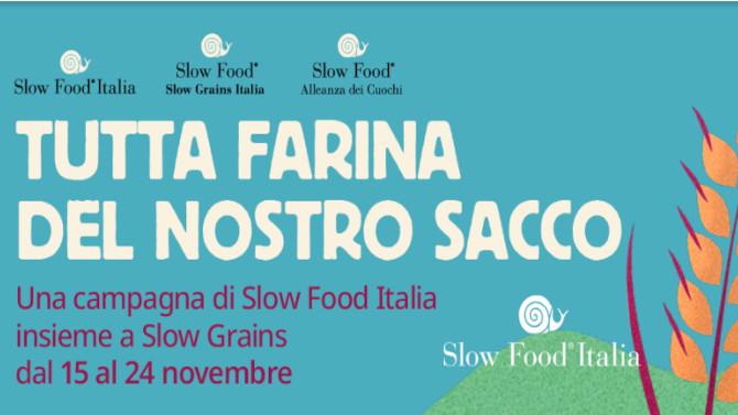 'Tutta farina del nostro sacco' è la campagna con cui Slow Food Italia chiama a raccolta l’Alleanza Slow Food dei cuochi per stringere una sinergia con Slow Grains, la rete di produttori e artigiani che nel Paese recuperano e trasformano le varietà locali di grani e frumenti, con l’obiettivo di valorizzare le filiere minori dei cereali tradizionali e di salvaguardare e recuperare la biodiversità dei grani così come i saperi diffusi e il tessuto sociale a essa legati.