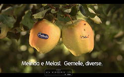 Nell'esecuzione tv, Melinda e Melasì sono due mele gemelle, nate sullo stesse montagne, sullo stesso albero e sullo stesso ramo. Così come la natura le ha volute uguali, è stata sempre la natura -sotto forma di una grandinata- a renderle diverse. 'Gemelle diverse' è per l'appunto il claim che conclude lo spot, affiancando per l'occasione i due brand.