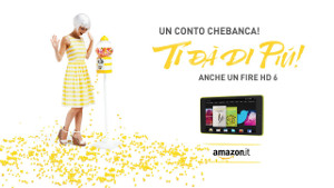 Guarda lo spot . La campagna, pianificata per due mesi in tv, web e nelle principali città italiane con un vortice di giallo, lancia la nuova promozione che offre in regalo un Fire HD 6 o un buono di acquisto del valore di 99 euro da spendere su Amazon.it a tutti coloro che aprono un conto entro il 31 marzo e vi accreditano stipendio o pensione corrente entro fine maggio.