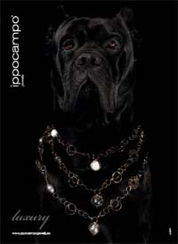 Un imponente ed elegante cane corso che indossa dei raffinati gioielli. Si tratta del protagonista della nuova campagna pubblicitaria che presenta la collezione di Ippocampo Jewels 2010. Una scelta di stile, che mira a sottolineare il valore dei gioielli stessi. Non un cane qualunque, ma un soggetto che tramite il suo raffinato portamento rispecchi l’eleganza e la preziosità dei gioielli di questa collezione, protagonista di questa nuova campagna.
