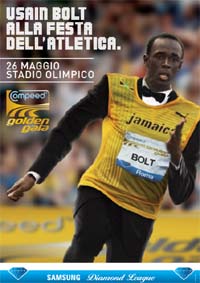 Usain Bolt, l’uomo più veloce del mondo, atterra allo Stadio Olimpico di Roma per il Compeed Golden Gala. SPQR Network realizza una campagna di comunicazione integrata a supporto della 31° edizione dell’evento.Il 26 maggio 2011, in occasione della più importante manifestazione internazionale di atletica leggera in Italia, il giamaicano tre volte oro olimpico e recordman mondiale, sfiderà, tra gli altri, l’ex primatista Asafa Powell e l’emergete francese Christophe Lemaitre, sui 100 metri piani.