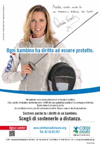 La campionessa mondiale di scherma è protagonista della nuova campagna di Cooperazione Internazionale Ong Onlus. La campagna si basa su uno scatto fotografico di Paolo Carlini. Art director della campagna, declinata offline (stampa, tv, radio) e online (banner), è Nausica Eleonora.