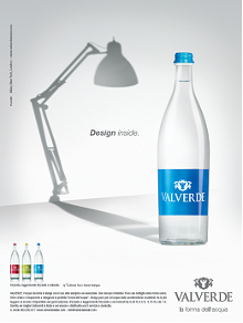 Giochi di luce rivelano l’anima dell’acqua Valverde; un’anima fatta di puro design, nata da una celebre matita, quella di Matteo Thun. L’ombra di Valverde si plasma fino a prendere la forma di veri e propri oggetti di culto, come l’ormai mitica lampada Naska Loris. Valverde, la forma dell’acqua, diviene icona di design.La nuova campagna stampa Valverde, ideata da Fluid Comunicazione, sarà on air in occasione del Salone del Mobile 2011 (Milano, 12-17 aprile) e programmata sulle principali testate di arredamento. “Il concept che sta alla base di Design Inside - ha dichiarato Fiorenza de Gennaro, Direttore Marketing di Spumador - sottolinea in maniera creativa il legame di Valverde con il mondo del design. La sua forma unica, in vetro chiaro disegna la perfetta forma dell’acqua ed entra a far parte dell’immaginario collettivo come le più celebri icone del design”.