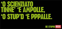 Versione dialettale per la campagna 'Be Stupid' di Diesel. Firma BCube