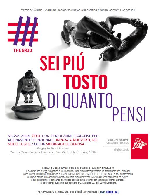 “Da molti anni siamo al fianco di Virgin Active, interpretando al meglio campagna dopo campagna i suoi obiettivi di comunicazione. Siamo molto contenti di aver collaborato con loro anche in occasione della promozione di questo innovativo programma di allenamento” ha commentato Vita Piccinini, Managing Director dell’agenzia. “Riteniamo che la nostra expertise strategica in ambito territoriale sia cruciale per concentrare gli sforzi su un pubblico profilato e che gravita in prossimità dei Club. Siamo certi che la campagna sarà in grado di assicurare e allo stesso tempo massimizzare sia la visibilità di The Grid che l’affinità rispetto al target di riferimento”.