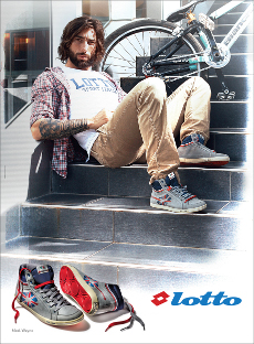 Non solo calciatori e tennisti internazionali, grandi campioni a cui Lotto ci ha abituato da anni. Claim insieme all’azienda veneta ha impostato una strategia di comunicazione multi-disciplinare: l’eclettico campione di Bike Trial - inviato speciale, Vittorio Brumotti, è il nuovo testimonial scelto per la campagna pubblicitaria di lancio della nuova collezione di sneakers lifestyle fall winter 2012 di Lotto.Un personaggio decisamente intrigante, atipico ed originale, popolarissimo anche grazie al suo ruolo di inviato speciale per “Striscia la notizia” e per le relazioni sentimentali con personaggi femminili molto in vista, Vittorio Brumotti con la sua bike è anche detentore di numerosi record del Guinness dei primati.