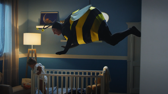 Una creatività divertente che parte da un insight strategico di estrema veridicità: per addormentare i nostri figli siamo disposti a tutto. Ecco, quel “tutto” trova il suo key frame in un padre attaccato al soffitto che canta una ninna nanna al suo bambino che proprio non vuole saperne di dormire. Un padre vestito da apina! Alla mamma del piccolo, Pisolino offre una soluzione molto più efficace e sicura per un’iperbole memorabile che avrà un finale ancora più divertente, tutto da scoprire.