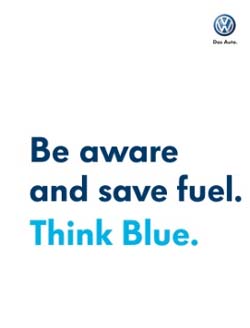 Proteggere l’ambiente è semplice e ciascuno può dare il proprio contributo nella vita quotidiana. Questo è il tema conduttore della nuova campagna pubblicitaria e d’immagine Think Blue., lanciata dalla Volkswagen. Si tratta di un forte messaggio a favore della mobilità sostenibile che è stato sviluppato partendo dall’etichetta ecologica 'BlueMotion' ben nota in ambito automobilistico. Questa filosofia aziendale è sottolineata dall’uso del blu come tinta predominante della campagna, un colore presente da tempo sia nel logo della marca Volkswagen, sia nello stesso sigillo 'BlueMotion'. La Volkswagen ha scelto di mantenere la tradizione abbinando ora il blu a ulteriori elementi innovativi e facendolo diventare, di fatto, il nuovo verde, ovvero la nuova tinta che identifica l’ecocompatibilità.
