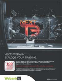 Webank lancia sul mercato NEXT3, nuova versione della piattaforma di trading T3 completamente reingegnerizzata per essere più potente, più veloce e più performante. Il lancio è affiancato da una promozione estremamente vantaggiosa, che offre 100 eseguiti al giorno a zero commissioni per due mesi per tutti coloro che si affrettano a scaricare e provare la nuova piattaforma.La campagna di comunicazione, declinata sia su stampa che web, utilizza la metafora dell'esplosione per veicolare l'innovazione e la potenza di NEXT3, che irrompe per rivoluzionare il modo di fare trading. Il concetto è ribadito anche dal claim, 'NEXT3 Webank. Explode your trading'. L'obiettivo è quello di ribadire ulteriormente il posizionamento di Webank come una banca che fa e offre cose eccezionali, anche nel trading.