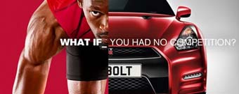 Uno degli spot promuove il nuovo modello GT-R sports attraverso il runner giamaicano Usain Bolt, l'uomo più veloce del mondo, mettendo l'auto e lo sprinter a confronto in una gara di velocità, chiedendo: "Cosa succederebbe se l'uomo più veloce diventasse ancora più veloce?'