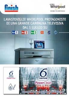 Whirlpool torna in tv, a luglio, con una nuova campagna che vede protagoniste le lavastoviglie 6° Senso PowerClean. Nello spot l’azienda raccomanda il detergente Finish Quantum per ottenere il miglior risultato. La campagna, realizzata da Publicis, sarà pianificata sulle reti Rai e Mediaset. La regia è di Les Enfants.Il nuovo elettrodomestico è dotato di un sistema di lavaggio intelligente che permette di lavare ogni giorno le stoviglie con basso consumo d’acqua. inoltre, i programmi di pulizia ‘Fast everyday’, ‘Notturno’ e ‘Vapore (Steam)’, sono creati per rispondere alle diverse esigenze.
