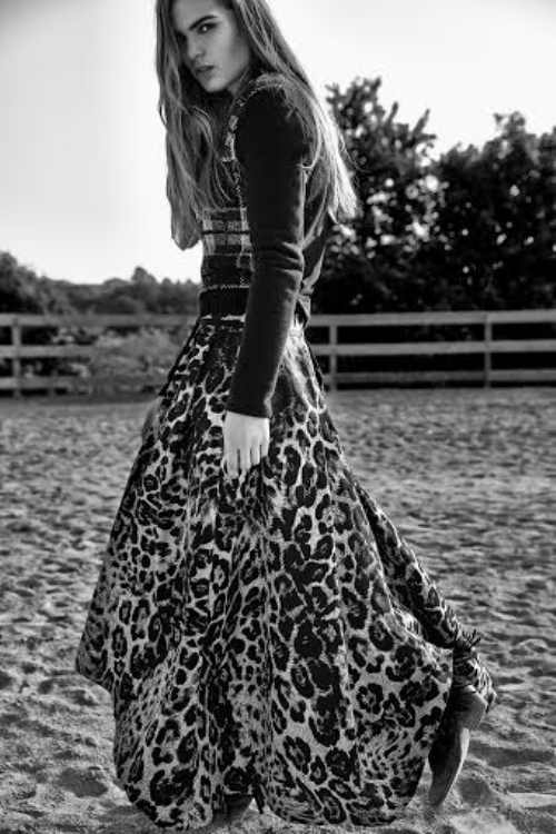 Protagonista degli scatti la modella Sandra Schmidt che, in un antico casale di pietra, come una moderna amazzone, indossa i must have della prossima stagione: cappotti e giacche avvitate dall’anima tecno che nascondono piccoli kilt in tartan chic e abiti a corolla rubati alle avanguardie di fine secolo. Ampie gonne a calice alternate a pantaloni tuxedo style con band bicrome.