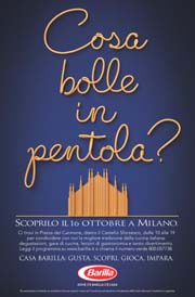 Riparte il tour di Casa Barilla, una festa itinerante dedicata alle famiglie, agli appassionati della buona tavola, e a quanti vogliono trascorrere una domenica diversa, all’insegna della convivialità e della gioia di stare insieme. Il tour di Casa Barilla procederà nelle piazze di 8 tra le più belle città italiane, tra cui il 16 ottobre a Milano, per terminare il 4 dicembre a Roma. Gli eventi sono stati supportati con la campagna di lancio “Cosa Bolle in pentola”, ideata per Barilla da Young & Rubicam Brands, sotto la guida di Vicky Gitto, Group Executive Creative Director e Worldwide Creative Director per Barilla. Dopo il grande successo del 2010, quest’anno il lancio di Casa Barilla è supportato con un progetto di comunicazione a 360° che abbraccia molteplici mezzi tra cui stampa, affissioni, radio e web (sviluppato da VML, la struttura digital del gruppo Young&Rubicam Brands). Lo scopo principale della campagna è quello di comunicare gli appuntamenti e invitare famiglie e giovani a partecipare al ricco programma di attività offerto da Casa Barilla: allegre gare di cucina per testare le proprie abilità culinarie, sotto la guida degli chef di Accademia Barilla, degustazioni, seminari e lezioni teorico-pratiche di cucina, i laboratori e le attività ludiche per i bambini nell’area Piccolini.