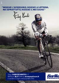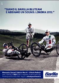 Dal 10 settembre sulle pagine del magazine 'Sportweek' la campagna di lancio per il progetto integrato 'Share your Dream' ideato per Barilla da Y&R Brands, sotto la guida di Vicky Gitto, Worldwide Creative Director per Barilla. La campagna, declinata su stampa e con viral sul web, presenterà gli atleti che compongono il “Barilla BLUTEAM” Fabrizio Macchi, Vittorio Podestà e Alessandro Zanardi, campioni di paraciclismo, e racconterà i valori che uniscono Barilla a questi campioni di sport e di vita.