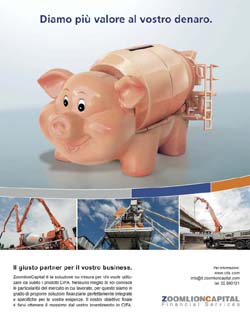 On air la campagna stampa ideata da Coo'ee Italia per Zoomlion Capital Financial Services, la nuova società di servizi finanziari del Gruppo Zoomlion.Il soggetto, destinato al mercato italiano, tratta il nuovo servizio di leasing in forma accattivante e friendly oriented.