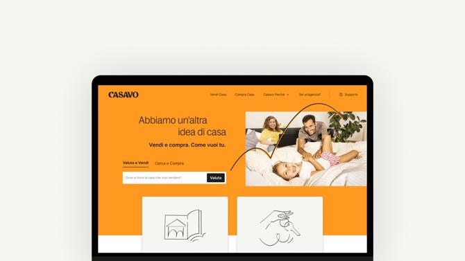 Il progetto di rebranding si sviluppa a partire dal “Casavo feeling”, concept che sottolinea un sentimento di apertura verso il futuro, rappresentato anche graficamente con una porta che si apre e un tratto indirizzato verso l’alto, a evidenziare come Casavo permette alle persone di aprire le porte a nuove possibilità avendo la consapevolezza di poter contare su un partner che le accompagna per tutto il processo.