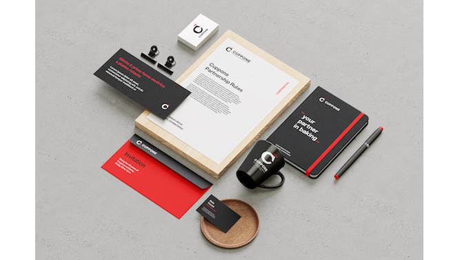 Il design del logo viene rivisitato in chiave minimale: la lettera ‘C’, assieme alle due iconiche fiamme stilizzate, è cornice in una figura sfondo che lascia intravedere una pala da pizza nella camera di cottura del forno, sintesi dell’offerta commerciale. La palette cromatica è stata rivista, giocando sul contrasto tra rosso, grigio e nero. Il payoff assume un font sans-serif, più pulito, semplice e intuitivo e con ‘Cuppone. Your partner in baking since 1963’ pone subito l'accento sui valori di serietà, storicità ed expertise dell’azienda.