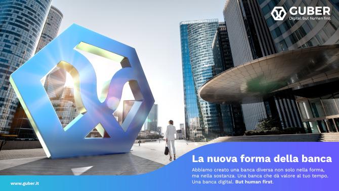 Nuovo logo, nuovi colori e un pay-off incisivo “Digital, but Human first”, che racchiude le due anime di Guber, una banca interamente digitale che fonda le sue radici nella relazione umana.
