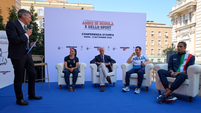 È stato presentato a Roma il nuovo community program di Esselunga che da “Amici di scuola” diventa “Amici di scuola e dello sport”. Nel corso della conferenza stampa sono intervenuti: Giovanni Malagò Presidente del Comitato Olimpico Nazionale Italiano, Roberto Selva Chief Marketing & Customer Officer di Esselunga e con la partecipazione di Antilai Sandrini, atleta della Nazionale italiana di Breaking, Emanuele Lambertini schermidore della Nazionale paralimpica italiana, campione del mondo di fioretto a squadre e Tommaso Marini campione del mondo di fioretto a Milano 2023.