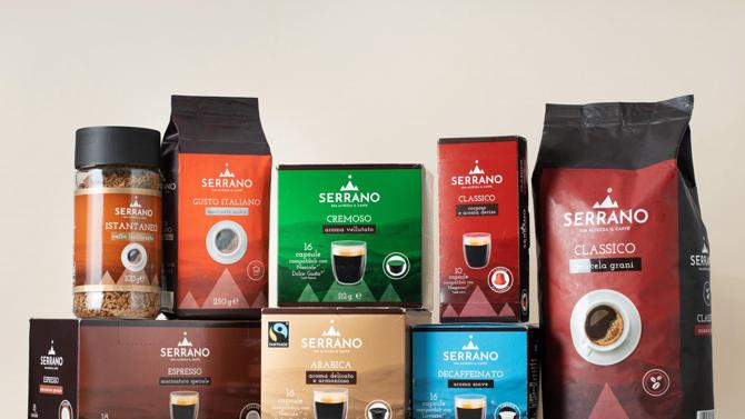 Per il packaging di Caffè Serrano si è scelto di creare un “vestito narrativo” ad hoc, puntando sull’origine del prodotto in altitudine e sul rapporto con la montagna, ben descritti dal logo, dal claim – con l’efficace definizione “Sua altezza il caffè” - dai pittogrammi e dai codici colore scelti per le categorie che lavorano sulla sfera percettiva: colori nobili, come il rosso scuro e il marrone che accompagnano le immagini per una nuova visual identity moderna ed elegante.