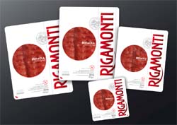 L’intervento dell’agenzia, che ha riguardato tutti i pack dei salumi Rigamonti (bresaola, Black Angus, carpaccio, equino, fiocco, speck, pancette), sia per il banco al taglio che