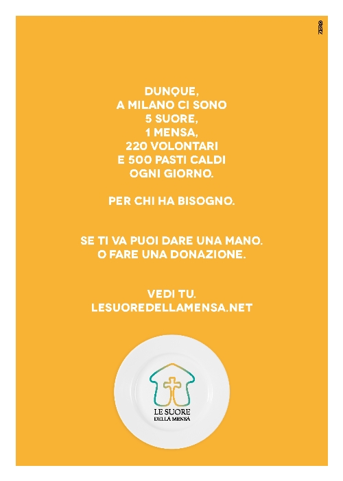 Le religiose sono l'unico soggetto 'femminile' a erogare pasti gratuitamente e proprio da qui è partita l'agenzia ZERO-starting ideas per creare un 'brand'. Nasce così Le Suore della Mensa, più facile da ricordare per chi vuole donare.