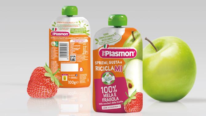 Plasmon per il packaging del suo prodotto “Spremi e Gusta”, la merenda per i più piccoli 100% purea di frutta, già presente da tempo sugli scaffali con una pouch dalla forma ergonomica, ha deciso di orientarsi verso la sostenibilità immettendo sul mercato italiano il primo pouch completamente riciclabile nel baby food.
