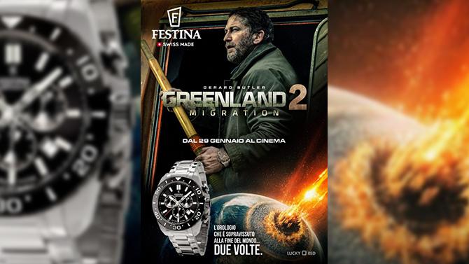 “L’orologio che è sopravvissuto alla fine del mondo… due volte!”. È questo il messaggio potente e memorabile che apre la partnership tra Festina e Lucky Red in occasione dell’uscita cinematografica di Greenland 2, attesissimo sequel del grande action movie in arrivo nelle sale italiane il 29 gennaio.