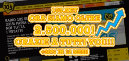 Radio 105 non cresce solo negli ascolti ma tocca risultati importanti anche con il suo sito 105.net, che a fine luglio 2015 ha raggiunto quota 2.5 milioni di visitatori unici (+29.3% luglio 2015 su luglio 2014) e 14 milioni di pagine viste.