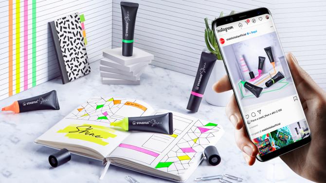 A partire dal sito Stabilo ai canali social internazionali, video, immagini, storie fanno risplendere la nuova gamma Stabilo Shine sulle scrivanie di professionisti, studenti e appassionati.