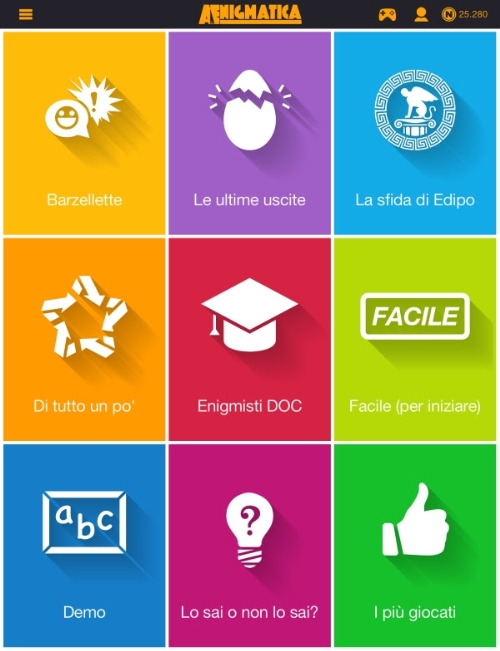 Nella nuova app AEnigmatica, i giochi sono divisi per temi e per categorie, facilmente selezionabili con un semplice tap.