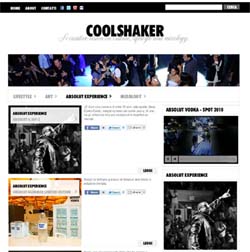 Coolshaker si articola in quattro sezioni principali: Lifestyle, Art, Absolute Experience e Mixology. All’interno del sito, è possibile trovare video curiosi e post originali che raccontano di eventi, iniziative e stravaganze del web.